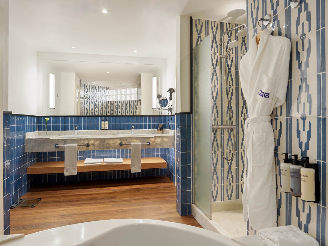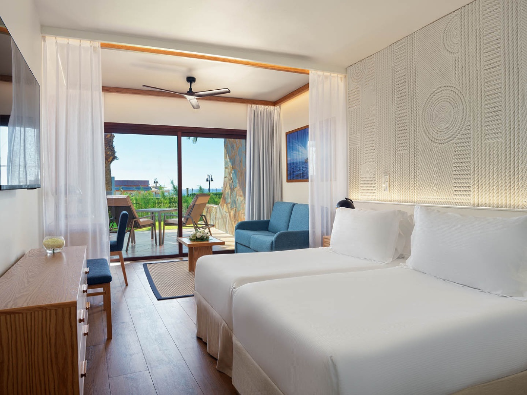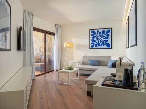 Spacious and comfortable 74 m² (797 ft²) suite with a 15 m² (161 ft²) terrace, fully furnished and with direct access to the solarium and swimming pool. It has two rooms (bedroom and living room) and a spacious bathroom. Special amenities are provided.